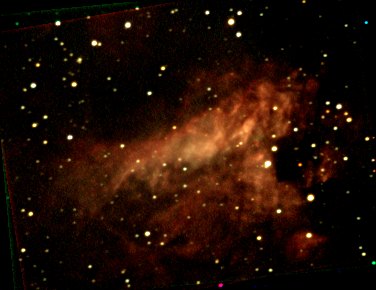 Ein sehr klarer Nachmittag verheisst einen schönen Beobachtungsabend, und trotz Mars-Stress (TV-Aufnahmen am Vortag, Sternabend am nächsten Tag) beschliesse ich, heute einmal in Ruhe zu beobachten. Bald stellt sich heraus, dass es sehr klar wird, die Durchsicht sehr gut. In grösserer Höhe ist auch das Seeing gut, wie ein Blick zu Epsilon Lyrae zeigt. Während sich Andreas, der auch hier ist, mit seinem Dobson visuell auf die Jagd macht, nütze ich die Zeit, bis Mars aufgeht, für RGB-CCD-Aufnahmen. Ich mache mich zunächst an M13, eigentlich nur zum Test. Die Sterne sind, auch dank meines neuen Motorfokussierers, gestochen scharf. Ich nehme je eine Serie zu 10 x 10 Sekunden auf, das genügt bei diesem Objekt für einen Test. Der Rest ist Nachbearbeitung. Durch das gute Seeing animiert, wage ich mich an ein anderes, viel schwierigeres Objekt: M17. Der Nebel steht tief über Wien, ob das etwas werden kann? Es kann. Mit drei Serien von 10 x 20 Sekunden, von denen ich aber die schlechtesten Bilder aussondere, entsteht das folgende Bild. Nicht schlecht für einen Test so nahe bei der Stadt. Und gut, dass ich mich an diesem Abend den Deep Sky-Objekten zugewandt habe, bei dieser Durchsicht wäre schade darum gewesen. Und vor allem deshalb: Kaum ist Mars einigermassen gut über dem Horizont, setzt Föhn ein und das Seeing wird radikal schlechter. Visuell waren noch einige Details zu erkennen, doch mit der WebCam nehme ich nur mehr Gewabbere auf. Lediglich ein Bild kann ich - auch als abschreckendes Beispiel - veröffentlichen. Eine tolle Nacht, in der der Star des August ausnahms- und verdienterweise nicht die Nummer eins war. |