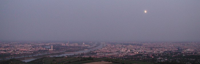 Tief steht der sommerliche Mond über Wien