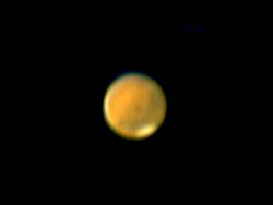 ![]() Roter Planet noch röter: Mit einem Orangefilter erkennt man Details der auf der Oberfläche noch deutlicher |