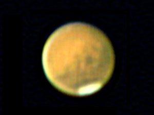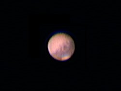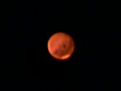 ![]() Mars in seinen natürlichen Farben. So erkennt man ihn im Fernrohr, wenn die Sicht einigermassen gut ist. |