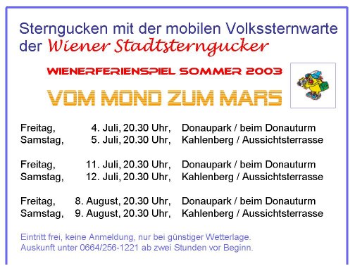 Im heurigen Sommer drehte sich alles um den Mars; da der Mars aber erst gegen Ende August zumindest am späteren Abend zu sehen sein würde, haben wir das Thema auf Raumfahrt und Raumflüge zu Mond und Mars ausgedeht.