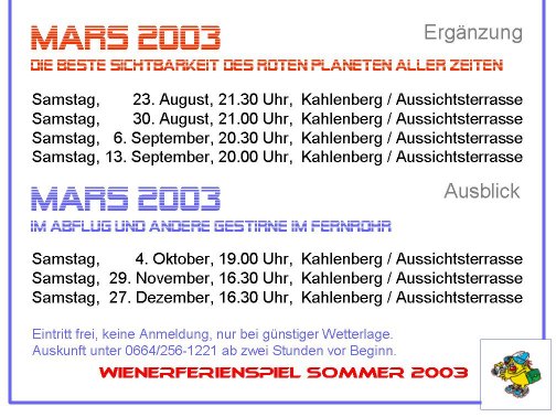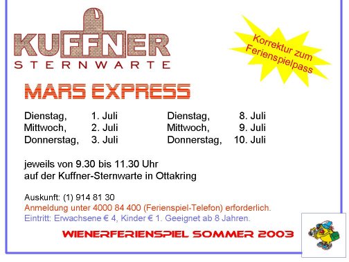 zu denen auch ausserhalb des Ferienspiels der Planet Mars im Fernrohr