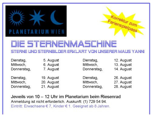 Ankündigung im Ferienspielpass ein Fehler passiert ist. Leider