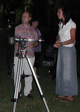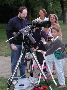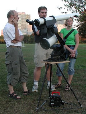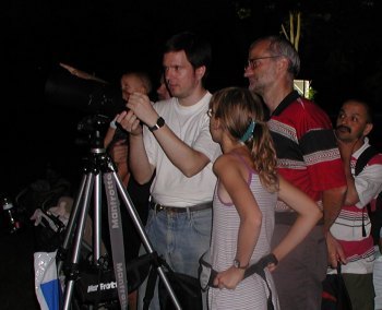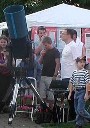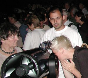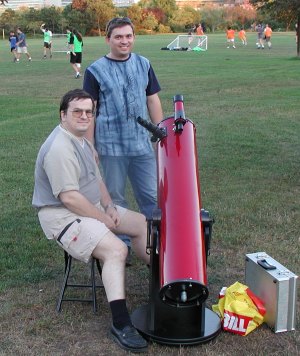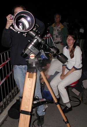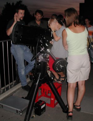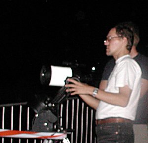 Alexander Pikhard (re. stehend) hier an seinem 30cm Spiegelteleskop.