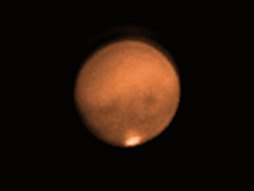| Bericht: | Hier meine erste brauchbare Mars Aufnahme mit 2x Barlow (2,4m Brennweite und IR-Sperrfilter). So wie bei Alex ist auch heute bei mir im östlichen NÖ das seeing anfangs (20 Uhr) sehr schlecht. Nur gewabbere, visuell genauso wie wenn man im sommer über eine heisse Landstrasse fährt und die heisse luft flimmert übern asphalt. zeitweise wirklich groteske Formen des roten Planeten, als würds ihn gleich zerreissen ;-). Später wurde dann doch das seeing viel besser, und meine erste Aufnahme (Summe aus 250 Bilder mit Registax und Photoshop bearbeitet)war im Kasten.