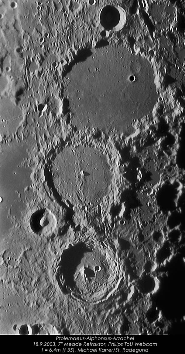 | Bericht: | hallo astrofreunde, langsam komme ich zum aufarbeiten der mondbilder vom september. ein erstes mosaik daraus, entstanden bei brennweite von 5,6m bei sehr guter luftruhe. mfg michael karrer