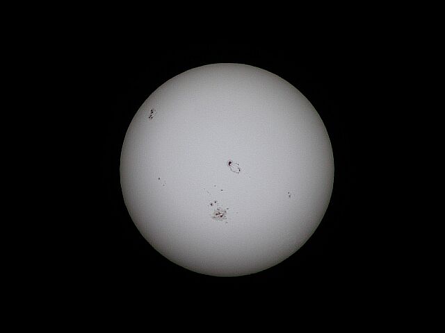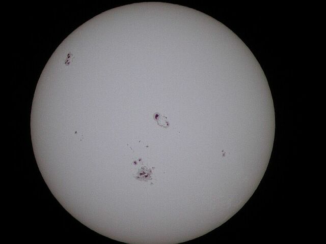 | Bericht: | Sonne Beobachtung Nicht nur das Wetter auf der Erde spielt verrückt, auch auf der Sonne geht es rund. Seit einigen Tagen gibt es sehr große Sonnenflecken Gruppen zu bestaunen. Wir packten unseren kleinen Pronto auf ein Stativ und gingen vors Geschäft in Wolkersdorf. Laute ahs und oohsss lockten einige Passanten heran und fragten was es denn zu sehen gibt. Ein Blick durchs Okular bestätigten unsere ahs und ooohssss. Um die Urlaute auch noch sichtbar zu machen, haben wir mit einer Olympus Camedia und einen Projektionsokular Maxview 40 2 Bilder der Sonnenoberfläche gemacht. Mehr braucht man dazu nicht zu sagen. Ludwig Grandy und Andreas Berthold