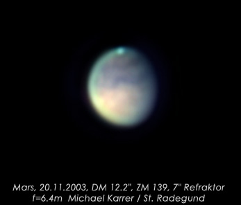 | Bericht: | während noch schöne nordlichtszenen auf eine bearbeitung warten, habe ich vermutlich mein letztes foto der heurigen sichtbarkeitsperiode gemacht und jetzt bearbeitet. die luftruhe war gut, nur unser freund schrumpfte seit meiner letzten webcam sequenz fürchterlich. gut, dass ich zu diesem zeitpunkt noch nicht nach norden blickte... Michael Karrer