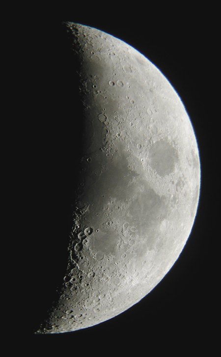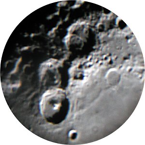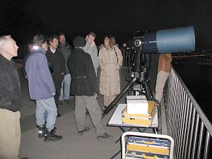 Der Anblick des Mondes im Fernrohr begeistert wiederum alle. Eine besonders schöne Phase mit dem markanten Kratertrio Theophilus, Cyrillus und Katharina am Terminator und einer extremen Libration in Länge, die seltene Formationen gut sichtbar macht.