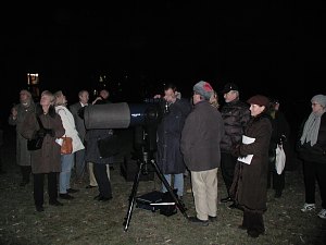 ![]() Trotz feuchtkalten Wetters folgen uns viele in den Park, um mit dem Teleskop den Sternenhimmel zu betrachten. |