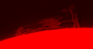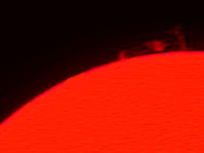 | Bericht: | Die Sonne ist immer noch sehr aktiv. Heute war im weissen Licht eine ausgedehnte Fleckenkette in der Sonnenmitte zu sehen. Im H-alpha bot sich eine sehr interessante Prominenz an. Ich habe heute zum ersten mal mit der WebCam Aufnahmen gemacht und lege sie bei.