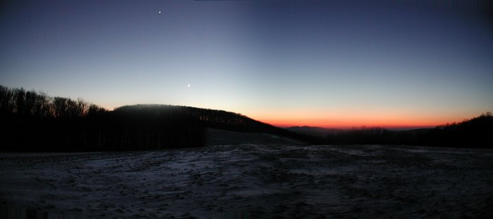 Das Instrument ist nach kurzer Zeit auf Betriebstemperatur, der Tubus ausgekühlt. Ein Blick zum Saturn bestätigt: Noch besseres Seeing als gestern. Es wird heute, der Kälte zum Trotz, ein Webcam-Abend. Bei dieser Temperatur hat mein Laptop schon ziemliche Startschwierigkeiten, nur in der noch einigermassen gemäßigten Umgebung im Auto lässt er sich dann doch zum Booten überreden. Dann arbeitet er allerdings einwandfrei. Nach Venus, die ich extrem kurz belichte (eine Videosequenz von rund 1000 Bildern zu je 1/500 Sekunde) wende ich mich auch noch dem Mars und dem Saturn