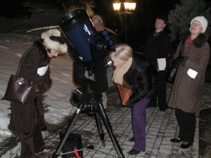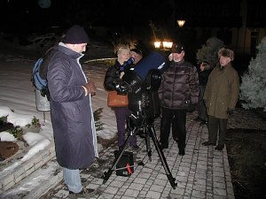 Auch die Venus ist nicht zu übersehen und strahlt hoch im Westen. Dann geht es ins warme Springerschlössl, wo die Planeten Venus, Erde und Mars einem Vergleich unterzogen werden. Leider hält das Wetter nicht. Nach Ende des offiziellen Kursabends scheint der Mond nur mehr aus Wolkenlücken.