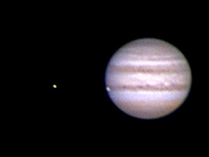 Nach einem milden, klaren Nachmittag hatten alle, die heute auf die Sofienalpe gekommen waren, eigentlich mehr erwartet. Doch bevor der Himmel bewertet werden konnte, galt die ganze Aufmerksamkeit der Suche nach einem geeigneten Platz zur Aufstellung der Instrumente. Noch immer türmt sich meterhoch der Schnee, doch das milde Tauwetter hat den Parkplatz in eine Schlammwüste verwandelt. Im Schnee aufstellen geht nicht, viel zu weich. Auf dem Parkplatz muss man einen abschüssigen Platz wählen, und der ist recht tief, dort, wo es flach ist, sammelt sich das Wasser in tiefen Pfützen. Wer hat da berichtet, der Parkplatz sei trocken? Wohl ein Scherzbold ... So drängen sich die Teleskope am Rand des Parkplatzes in einem kleinen Bereich, den Hans Peter Müllner freigeschaufelt und mit ein paar provisorischen Entwässerungsrinnen begehbar gemacht hat. Ein Blick nach oben: Wolken. Hmmm ... Die Sterne funkeln nicht allzu stark, das Seeing könnte passen. Also aufbauen, aber vorsichtig, sehr vorsichtig. Wenn etwas hinunter fällt, igitt! Ich starte zum Planetevergleich. Mit 3m Brennweite, mehr ist nicht drin, nehme ich nach und nach die vier hellen Planeten Venus, Mars, Saturn und Jupiter auf. Merkur ist sich noch nicht ausgegangen, bzw. ich bin zu spät dran. Es ergibt sich ein interessanter Vergleich der momentanen scheinbaren Größen. Der Größenvergleich ist schon interessant. Wie winzig Mars geworden ist, und wie groß Venus schon ist, größer als Saturn. Jupiter schlägt sie heute mit dem Farbenspiel seiner Wolken. Die EZ ist auffällig gelb und die Polarregionen schimmern in diversen Pastellfarben. Die Bänder sind sehr turbulent. Eigentlich stehen einige interessante Jupitermonderscheinungen auf dem Programm (gleichzeitig Durchgang und Schattenvorübergang von Io und Europa), aber leider erst sehr spät (Ende gegen 1.30 Uhr). Morgen ist Arbeitstag und die Wolken werden auch immer mehr, da nehme ich nur das erste Ereignis auf, den Beginn des Vorübergangs von Europa vor der Jupiterscheibe. Schade - sie zieht genau über ein dunkles Band, das könnte man in vollem Verlauf beobachten.