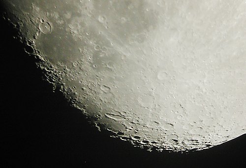Auch am vierten Abend unseres Kurses Erlebte Astronomie, Teil 2 konnten wir zumindest einige Blicke zu den Gestirnen werfen, allerdings durch Wolkenlücken. Das Thema des Abends war Jupiter, und diesen Planeten konnten wir im Anschluss auch beobachten, wenngleich die interessantesten Strukturen seiner Atmosphäre oder besondere Erscheinungen der hellen Monde leider nicht zu beobachten waren. Die Wolkenlücken waren dann auch zu kurz für die schon fast übliche Aufnahme des Planeten. Ein paar Unentwegte blieben dann noch, um den einen oder anderen Blick zum Mond zu ergattern oder gar einen Schnappschuss mit der Digitalkamera. Und da zeigte sich, wie scharf solche Bilder werden können. Aus einfach ans Fernrohr gehaltenen Schnappschüssen mit der Digitalkamera ein Bildmosaik zu machen, ist wegen der Vignettierung und der automatischen Regelung der Kamera fast ein Ding der Unmöglichkeit, dennoch, unter Anwendung diverser Tricks der digitalen Bildverarbeitung, geht es doch einigermassen. Wir würden mehr solche Praxisabende brauchen, doch wer sagt's dem Wetter? |