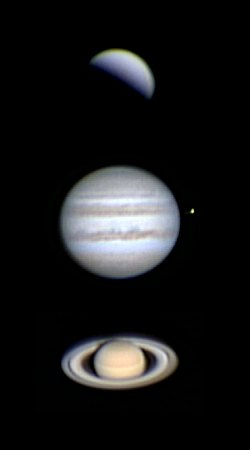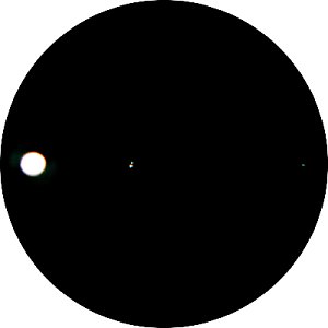 im Bild fest. Callisto, der schwächste Mond, steht weit abseits.