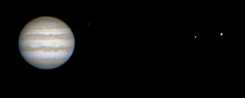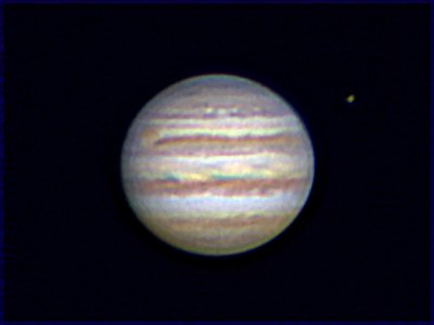 In "diplomatischer Mission" als WAA-Präsident unterwegs, wird es auch heute wieder etwas später, doch der klare Abend macht es mir doch viel zu schwer, nicht ans Teleskop zu gehen. Und es soll sich lohnen. Über Wien ein ungewöhnlich klarer Himmel! Ein paar Kontrollblicke durch das 12" aus dem an sich schon lichtverschmutzen Süden Wiens zeigen ganz passable Galaxien: M104, sogar mit Staubband (14mm Pentax). M87 hell, rund, diffus und sehr deutlich (21mm Pentax). M84 und M86 in einem Gesichtsfeld (40mm Pentax), doch bei dieser schwachen Vergrößerung ist der Himmel doch sehr hell. Ein Blick zu Gamma Virginis: Hm, doch recht arges Seeing dort "unten" - er steht noch tief. Ich kann ihn nicht trennen. Dafür reichen die Bedingungen heute nicht. Und jetzt Jupiter, der viel höher steht. Die ersten Blicke durch 21mm Pentax sind sehr vielversprechend. Doch ich kämpfe etwas mit der Schärfe. Um das Seeing zu testen, defokussiere ich, denn so erkennt man die Schlieren besser. Alles klar: Großräumige, langsam bewegte Schlieren. Für einige Sekunden ist das Bild unbrauchbar, aber dazwischen steht es auch für einige Sekunden absolut ruhig. Im 14mm Pentax kommen enorm viele Details heraus. Der GRF dreht sich gerade über den Rand, blass, aber doch deutlich rot. Die Bänder sind heute deutlich rostrot, die EZ merklich gelb. Callisto steht nahe bei Jupiter, deutlich der schwächste der vier Monde. Eigentlich ideal für die Webcam; wenn ich so eine ruhige Phase erwische, kann nichts schiefgehen. Ich probiere ein paar Serien mit drei Metern Brennweite. Eine davon ist brauchbar. Da die sehr ruhigen Phasen länger anhalten, wage ich mich über einen Versuch mit der 2x-Barlowlinse, also mit 6m Brennweite (seit langem das erste Mal). Und von den vier so gewonnenen Sequenzen wird eine wirklich gut. Vor allem gelingt es mir, die Farben (verstärkt, aber im richtigen Ton) so wiederzugeben, wie es dem visuellen Eindruck entspricht. Die gelbliche Farbe der EZ geht auf mehrere sehr gelbe Wolken zurück. Die deutlich rostrote Färbung des NEB und SEB entsteht primär in einem dünnen Bereich dieser Bänder. Und der S-Rand des NEB (unteres Band, oberer Rand im Bild) zeigt wieder die seit über einem Jahr beobachteten, türkisfarbenen Wolken, an deren ungewöhnlichen Anblick ich mich jetzt schon gewöhnt habe. Auffällig auch wieder die zweigeteilte Färbung des GRF, dessen südlicher (oberer) Bereich deutlich rot ist, der nördliche, zur EZ reichende Bereich aber eher grau. Erstaunlich: Gleich drei STBs sind zu sehen, also drei dünne Bänder in der südlichen gemäßigten Zone, in der auch etliche Weiße Ovale zu sehen sind. Der Norden (unten) ist deutlich ruhiger, aber auch fein strukturiert. Es war aber wert, einen Blick durchs Fernrohr zu riskieren. |