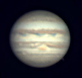 | Bericht: | Nach langer astronomischer Pause beschloß ich trotz drohender Schlaflosigkeit das Wetter auszunutzen und ein paar Jupiterbilder zu machen. Des kürzeren Weges wegen fuhr ich auf die Hohe Wand. Offenbar sind unlängst einige Leute der Meinung gewesen, dass der Parkplatz einen beleuchteten Cola-Automaten braucht :-) Also das nächste Mal ein schwarzes Tuch oder eine Plane mitnehmen. Es waren schon 2 Kollegen da die CCD Aufnahmen machten. Das Seeing war gut. Da ich in der letzten Zeit mich noch immer mit der Enträtselung der Webcam-Technik befasse habe ich keine Deepsky Objekte angeschaut (eigentlich unverzeihlich). Hier ist mein Jupiter: