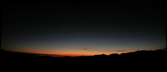 Einmal muss auch die herrliche Abendstimmung auf Hakos festgehalten werden; zumal wir von Tag zu Tag verfolgen können, wie die Venus an Elongation verliert.