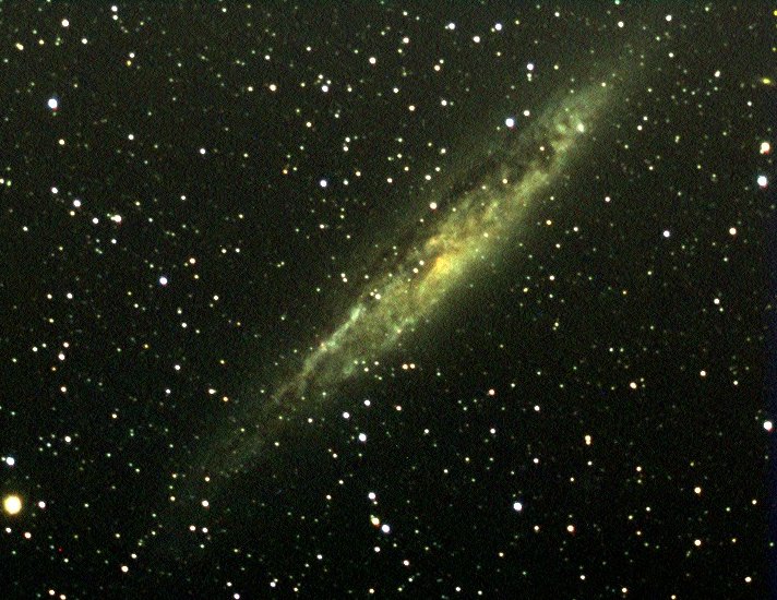 Zunächst eine sehr klare Nacht. Leider anfangs zu hektisch, da die aus Sossous Vlei Zurückgekehrten um jeden Preis den Kometen fotografieren wollen, auch wenn die Sicht längst durch Gebäude verstellt ist. Anfängliche Versuche, Details in der Großen Magellanschen Wolke zu fotografieren, scheitern am Seeing und an besagter Hektik. Die Aufnahmen in diesem Bericht sind schnelle Erstausarbeitungen. Die endgültige Ausarbeitung des enormen Datenmaterials wird noch lange in Anspruch nehmen und wir werden die schönsten Bilder nach und nach veröffentlichen. Ich wende mich höher stehenden Objekten zu und beginne mit der großen Kantengalaxie NGC 4945 im Zentauren.