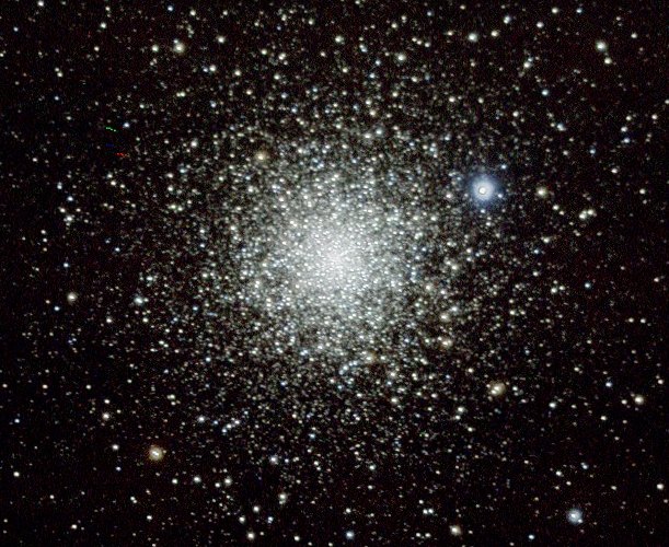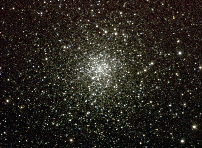 Doch oh Schreck, immer mehr Wolken ziehen auf. Jetzt gehen nur mehr "schnelle" Objekte, also Kugelsternhaufen. Das Ausarbeiten wird mühsam, da die Belichtungszeiten in Folge rasch durchziehender Wolken nicht in allen drei Farbkanälen gleich sind. Da leidet die Farbbalance etwas, und in ganz unwissenschaftlicher Weise improvisiere ich etwas.