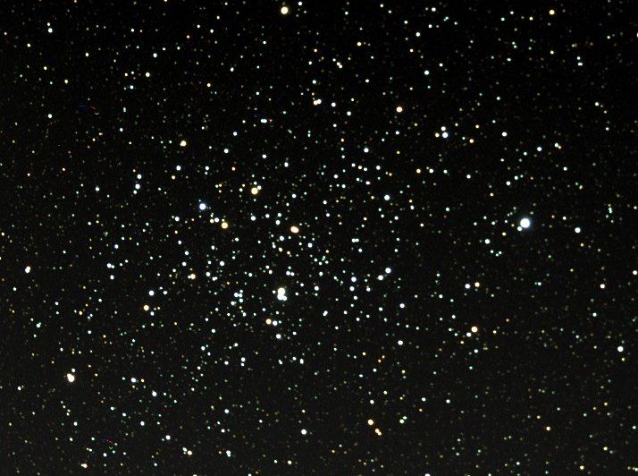 Die Farben kommen bei diesem Objekt wunderbar heraus, sie sind ja schon visuell eine Pracht. Auf der Suche nach weiteren Objekten bin ich an die Wolkenlöcher gebunden, und die halten sich vor allem im Bereich der Milchstraße zwischen Kreuz des Südens und Skorpion auf - einer mit freiem Auge spektakulären, aber an interessanten Objekten eher armen Gegend. Eine Ausnahme bildet hier der reiche offene Sternhaufen NGC 6067 in dem kleinen, unauffälligen Sternbild Norma ("Lineal"). Das Sternbild fällt am ehesten durch eine sehr helle Sternwolke in der Milchstraße auf.