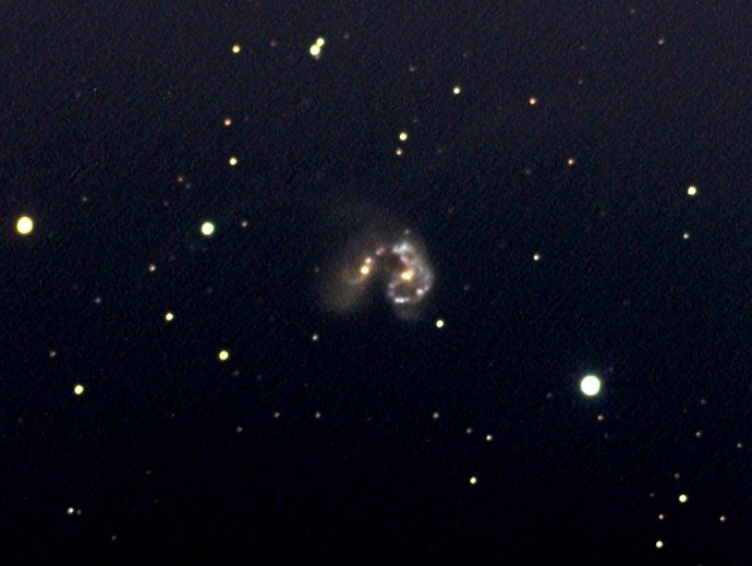 Wieder eine klare Deep Sky Nacht, wenngleich nicht so extrem gut, wie wir es von Namibia gewohnt sind. Wäre da nicht die südliche Milchstraße und das Kreuz des Südens, wir würden uns wie auf der Ebenwaldhöhe in einer sehr guten Nacht fühlen (die es zu Hause derzeit leider nicht gibt; die Nachrichten vom NTT sind erschütternd schlecht). Während Günther wie immer mit seiner Canon 10D am Refraktor einen Belichtungsrekord nach dem anderen bricht (die Antennen der Antennengalaxien mit 80 Sekunden Belichtungszeit klar und deutlich zu erkennen), wurschtle ich auf die althergebrachte CCD-Art mit langen Belichtungsserien am auf f/6.3 verkürzten C8 weiter.