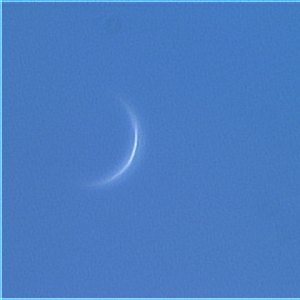Nach einem Blick auf die fast fleckenfreie Sonne unternehme ich den schwierigen und auch nicht ganz ungefährlichen Versuch, die Venus einzustellen. Nachdem mein Magellan-Computer mit "Too close to the sun" verweigert, stelle ich mit TheSky ein und in der Tat kann ich die hauchdünne Sichel der Venus noch gut erblicken. Sogar eine Webcam-Aufnahme geht sich aus, bei dem extrem schlechten Seeing am Taghimmel hat dann Registax alle Hände voll zu tun, die 8 (!) besten von rund 1000 Frames zu stacken. Das Fokussieren war eine mehr als nervenaufreibende Tätigkeit!