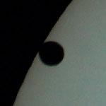 | Bericht: | Um dem Effekt der Sonnenfinsternis +99 zu entgehen, beschloß ich, den Venustransit in Güssing zu beobachten. Visuell hatte ich ein tolles Erlebnis, doch bei der Technik wurde ich von einigen Pannen überrascht. Zuerst einmal den positiven Teil: Beim Eintritt konnte ich den feinen Lichtring um den noch außerhalb der Sonne befindlichen Teil der Venus, sowie das Phänomen des Schwarzen Tropfens deutlich sehen.