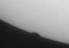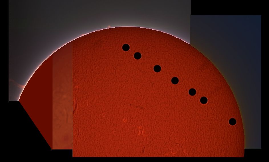 | Bericht: | Wegen den Wolken am Vortag beschloss ich mich in der Nähe des Flughafens zu positionieren. Ich war um Halbsieben nördlich von Klein-Neusiedel am Parkplatz von wo aus man zur Piste 29 wandern kann. Ich habe den Astro Physics für Weißlicht und den kleinen Pentax 75 mit dem Corornado 40mm Filter für H-alpha aufgestellt. Trotz zeitigem Erscheinen war die Warnung von Alexander am Montagabend gold richtig: "Solche Ereignisse warten nicht bis man fertig wird, sie beginnen einfach!" So wurde es doch noch hektisch bis alles lief. Ich hatte an beide Refraktoren Webcams montiert. Im Weißlicht konnte ich weder beim 1+2 Kontakt per Monitor noch beim 3+4 Kontakt im Astro Physics auch nur den geringsten Anschein des Tropfeneffekts bemerken, es war fast langweilig, so wie in einer Computersimulation. Im kleinen Refraktor mit nur 40mm Auflösung (und vielen Glassflächen) jedoch war der Effekt deutlich zu sehen. Während der langen Transitzeit kamen einige Interessierte vorbei. Ich glaube, dass ich manche für die Astronomie begeistern konnte. Vielleicht kommen sie auch mal bei uns vorbei? Für andere dagegen bildete mein Anblick Anlass zur Erheiterung. Ich hatte die Notebook Computer zur Abschattung vom hellen Licht in Kartonschachteln gesteckt und beugte mich immer wieder mit dem in Namibia erstandenen Safarihut tief in die Boxen. Ich schaute auch oft mit der Sonnenfinsternisbrille. Ich finde, freiäugig wirken astronomische Ereignisse ganz anders. Man kann sich das Sonnensystem so viel besser vorstellen, weil die riesige Größe, die eigentlich immer dazu gehört, nicht durch das Okular seziert wird. Ich hatte das Gefühl, dass der Venustransit für uns doch so ähnlich ist wie die Mitverfolgung einer Operation am lebenden Patienten für einen Medizinstudenten. Man sieht, dass sich das riesige komplizierte Werkl bewegt und plötzlich wurde es mir begreiflich bewusst, dass auch ich auf so einem ähnlichen, beweglichem Brocken durch das All fliege. Die Bewunderung gehört einfach dazu! Ich war auch wegen der ISS an diesen Ort gekommen. Ich sah um 12:09 nichts bemerkte aber auf den Aufnahmen um ca. 10:09 ein Objekt das durch die Sonne zog. Allerdings war es eine H-alpha Sequenz, die noch dazu um Prominenzen abbilden zu können die Sonnenoberfläche überbelichtete. Trotzdem kann man auf einem halben Dutzend Bildern einen dunklen roten Punkt mit gleichmäßigem Abstand quer durch die Sonne eilen sehen. Leider natürlich als Satellitenaufnahme unbrauchbar. Vielleicht ein anderes Mal, ohne Venus? Am Ende des Transits holten auch mich einige Wolkenfetzen ein (vielleicht auch nur mich?). Deshalb habe ich vom Austritt keine Aufnahmen mehr gemacht, dafür haben wir immer wieder visuell beobachtet. Nach dem 3. Kontakt konnte man auf der Venus sehr schön die erleuchtete Sichel auf der zur Sonne entgegen gesetzten Seite erkennen. Ein nettes thailändisch/österreichisches Ehepaar mit ihrem kleinen Sohn konnte ebenfalls den hellen Ring sehen. Als Bildmaterial kann ich eine Animation im weißen Licht und ein H-alpha Komposit unterschiedlicher Qualität beisteuern.