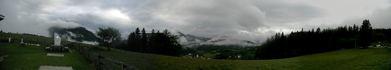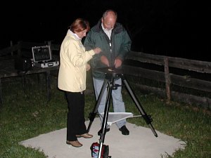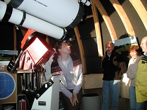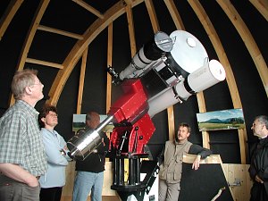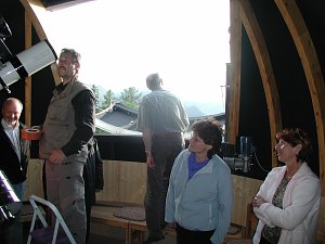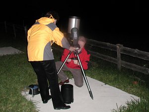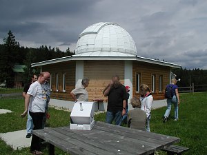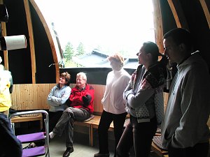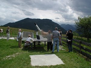 ... doch ein kleines Wunder eintritt (einmal mehr wird die Erwähnung der Wörter 'Wunder' und 'Mariazell' in einem Bericht so manche Suchmaschine in die Irre führen). Jedenfalls treffen wir uns am Abend - es ist noch taghell - auf der Sternwarte, Günther Eder und ich erklären gerade das Instrument, als erste Sonnenstrahlen durch die Wolken brechen. Wir sind nicht mehr zu halten, öffnen die Kuppel.