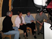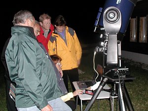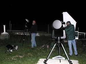 Das Unglaubliche tritt ein: Immer weiter ziehen sich die Wolken zurück, um blauem, klarem Himmel Platz zu machen. Bald beobachten wir Jupiter, und mit fortschreitender Dunkelheit können wir bei zeitweise sehr guter Transparenz Deep Sky Objekte bewundern. Erst sind es die helleren Kugelsternhaufen, die allgemein begeistern: M3 und M13. Dann der Ringnebel, M57. Dann schon schwächere Objekte wie M27 oder die beiden Kometen C/2001 Q4 (NEAT) und C/2003 K4 (LINEAR) - beide übrigens sehr hell und noch immer mit deutlichem Schweif, jeder von K4 sogar breit aufgefächert. Schließlich sind noch Galaxien dran, M51, Markarians Kette und mehr. Und plötzlich kennt der Beobachtungshunger unserer Mitglieder keine Grenzen mehr: Zu gross ist das Gedränge in der Kuppel, die eigenen Instrumente werden aufgebaut. Das ist Beobachtungsfieber à la WAA!