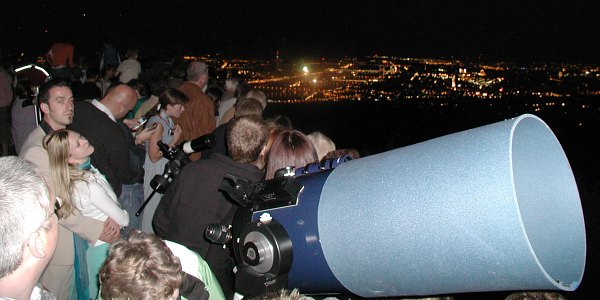 Eigentlich durch Zufall erlebt die mobile Astronomie hier und heute eine Sternstunde. Doch genau das ist ja die Intention unserer Sternabende auf dem Kahlenberg: Publikum anzusprechen, das unter normalen Umständen nicht so schnell auf eine Volkssternwarte gekommen wäre. Und es gelingt uns. Von den rund 600 Schaulustigen bleiben gut zwei Drittel noch zum einen oder anderen Blick durchs Fernrohr, stellen Fragen und hören interessiert den Erklärungen zu. Erst nach ein Uhr Nachts beginnen wir mit dem Abbau der Station, und wieder einmal mehr wird unsere "Late Night Sky Show" gegen Mitternacht zum ganz besonderen Erlebnis, dann nämlich, wenn die interessiertesten der Intressierten ihre Fragen stellen und wir sie korrekt, aber sehr humorvoll beantworten.