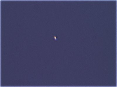 Bald ist der kleine, sonnennahe Planet gefunden und zeigt im Fernrohr, 21mm Pentax-Okular, eine deutliche Phase. Trotz des durch die tiefe Lage schlechten Seeings wage ich eine Webcam-Aufnahme, und ja, die Phase kommt heraus.