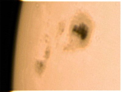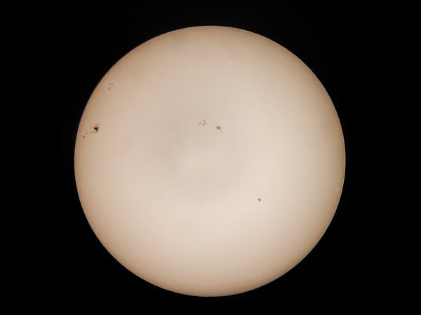 Gerade heimgekehrt von der Jugendgruppe im Ameisthal, baue ich - was etwas schweisstreibend ist - noch einmal das Teleskop zu Hause auf der Terrasse auf, um Sonne und Venus zu beobachten. Die Sonne zeigt sich noch immer fleckenreich, und die grosse Gruppe hat sich schon so weit vom Sonnenrand entfernt, dass sie mit Phantasie und Finsternisbrille schon freisichtig ist. Zum Abschluss noch ein Blick zur Venus. |