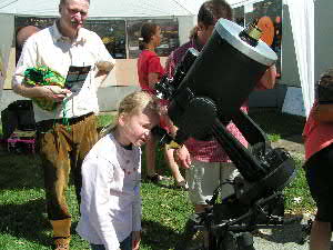 Wir haben im Rahmen unserer Mobilen Sternwarte zwei Fernrohre aufgebaut; ein 10" Meade LX200GPS für Beobachtungen im Weisslicht mit Baader-Folie und ein C8, an dem wir heute für Astrostudio einen Coronado Solarmax Filter für H-Alpha-Beobachtungen testen.