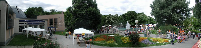 Zum dritten Mal innerhalb kurzer Zeit finden wir uns zu morgendlicher Stunde vor dem Wiener Planetarium ein. Nach Astronomietag und Venustransit steht heute das Eröffnungsfest des heurigen Sommerferienspiels auf dem Programm. Für die Wiener Astronomie ist es teilweise ein "Heimspiel": Das Planetarium braucht nicht hierher in den Prater gebracht werden, es steht seit 1964 hier. Alles andere aber schon, und so bringen Kuffner-Sternwarte, ÖWF und WAA ihre mobilen Stationen und Aktionen hierher.