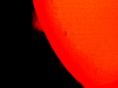 Wir haben drei Fernrohre hierher gebracht, und fast sieht es wie ein Messestand der Firma Meade aus: Ein 8" Meade LX200GPS dient der Sonnenbeobachtung im H-Alpha-Licht, und in der Tat sind einige Protuberanzen zu sehen. Ein 10" Meade LX200GPS ist für die Beobachtung der Venus bei Tag vorgesehen; solange Wolken den Blick vereiteln bzw. nach Untergang der Venus betrachten wir damit kleinste Details am Riesenrad. Und ein 12" LX200 zeigt die Sonne im Weisslicht.
