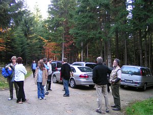 Wir versammeln uns in einem kleinen Waldstück nahe bei Sandl, um die letzten Meter zur Sternwarte zu Fuß zu absolvieren. |
