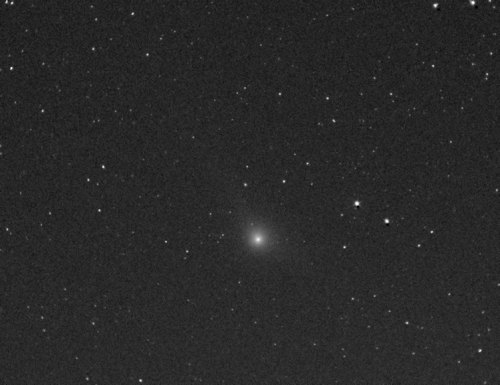 Ermutigt von diesem einen Bild eines tief stehenden Objekts wage ich mich in dieser Konfiguration (F=135mm, f/8, HiRes-Modus mit 752x580 Pixel, leider schwarzweiß, da ich hier keine Filter unterbringe) an Deep Sky. Ich beschließe Serien. Diese haben den Vorteil, in der Kälte allein vor sich hin zu belichten, während ich im warmen Schlafzimmer in aller Ruhe Stargate schauen kann ...