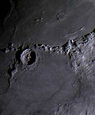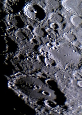 | Bericht: | Eigentlich hatte ich heute nur vor, einen Blick zum Kometen C/2004 Q2 Machholz zu werfen; doch es sollte anders kommen. Beruflich im 37. Stockwerk des Millennium-Tower unterwegs, fesselte mich die unglaubliche Fernsicht. Der Schneeberg zum Greifen nahe, so dass man fast hinüberspringen wollte. Es würde also eine recht gute Beobachtungsnacht werden. Das helle Mondlicht lässt mich zunächst von einer Fahrt auf die Sofienalpe oder gar die Ebenwaldhöhe Abstand nehmen - eigentlich ein Fehler, wie sich herausstellen wird - doch die Resultate sollen auch aus Wien senstationell werden. Ich stelle das Fernrohr auf die Terrasse und lasse es einmal ordentlich auskühlen. Nach etwa einer Stunde ist es dann so weit temperiert, dass Beobachtungen sinnvoll werden. Ich beginne mit dem Mond. Wow, was für eine interessante Phase. Plato ist gerade einmal zur Gänze beleuchtet, von Copernicus nur ein ganz kleiner Teil, dafür ist Eratosthenes wirklich umwerfend. Der Bogen der Apenninen ist auch noch sehr schön, und im Süden stehen Tycho und Clavius nahe dem Terminator. Die Libration in Länge ist nach wie vor sehr stark und jenseits des Mare Crisium sind einige seltene Formationen zu beobachten, vor allem die Mare Humboldtianum, Marginis, Smythii und Australe. Ich beginne mit dem obligaten Schnappschuss mit der Digicam.