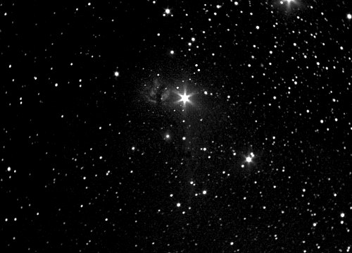 Bei zwei Minuten Belichtungszeit macht sich die Bildfelddrehung (nahe des Meridians) noch nicht so störend bemerkbar. Die Aufnahme zeigt überraschend viele Details; Neben M42 und M43 noch die Nebelgruppe NGC 1973-75-77 um den Running Man, den offenen Sternhaufen NGC 1981 (ganz oben), das Nebelgebiet NGC 1980 um ι Orionis, den winzigen Reflexionsnebel NGC 1999 (ganz unten, wenn man's weiss). Der diffuse Fleck rechts oben nahe dem Rand ist der extrem rote veränderliche Stern S Orionis, er wird von der Optik nicht scharf abgebildet! Die Aufnahme entstand übrigens gänzlich ohne Filter - und das bei hellem Mondlicht aus der Stadt heraus. Jetzt werde ich mutig. Und für meinen Mut belohnt ...