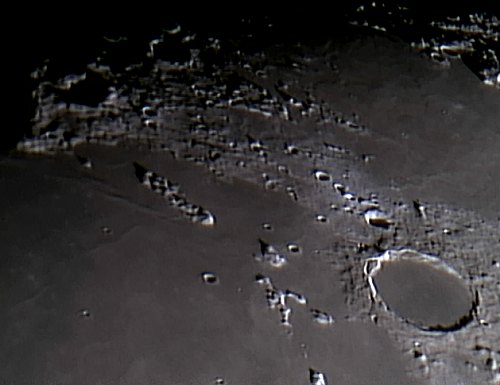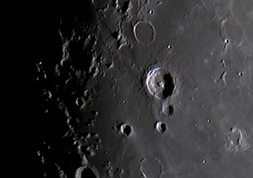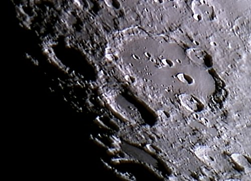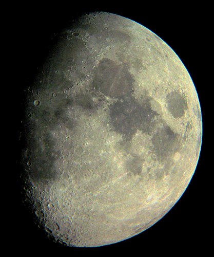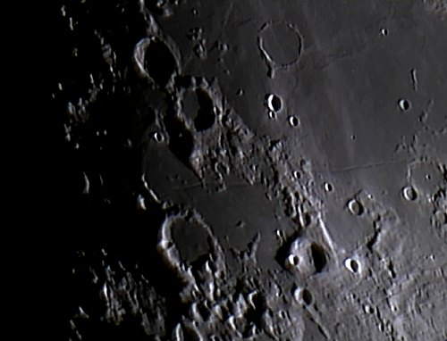 Heute herrscht wieder ein typischer Stadthimmel; es ist dunstig, und der Dunst wird durch Stadtlicht und Mond erheblich aufgehellt. Nachdem das Seeing nicht so schlecht ist, widme ich mich dem Mond.