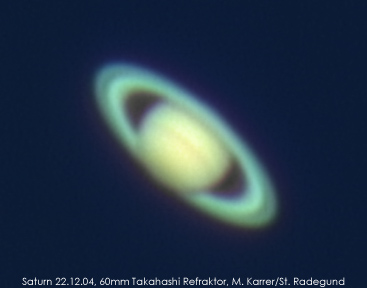 | Instrument: | 60mm Takahashi Refraktor (Saturn) bzw. 180mm Tele (Machholz) | ||||||||