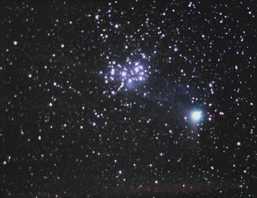 Heute ist der Tag der Tage in der Sichtbarkeit des Kometen Machholz, denn heute passiert er die Pleiaden und sein Schweif sollte den Sternhaufen erreichen. Eine Seltenheit, und daher fiebern wir diesem Ereignis einigermaßen entgegen. Die Wetterprognosen von BOLAM 21km sind nicht hoffnungslos. Irgendwann zwischen 19 und 22 Uhr MEZ sollte der Himmel aufklaren (BOLAM gibt das aktuelle Wolkenmodell in 3-Stunden-Intervallen an). Wir haben diese besondere Konstellation zum Anlass genommen, einen Astropraxis-Abend auf der Sofienalpe anzukündigen; erfreulicher Weise hat Radio Wien die Ankündigung zum Anlass für eine Live-Einschaltung am Abend genommen und so können wir heute auf der Sofienalpe - wo sich viele WAAler mit ihren Teleskopen eingefunden haben - viele interessierte Gäste begrüßen und neue Interessenten gewinnen. Zeitweise herrscht eine Stimmung wie bei Hale-Bopp, an den sich die meisten unserer Gäste noch gut erinnern können (ja, es ist schon acht Jahre her ...), viele hatten damals an genau diesem Ort hier ihren ersten Kontakt mit dem Sternenhimmel. Nachdem es gegen 18 Uhr schon recht klar war, müssen wir gut zwei Stunden damit verbringen, darauf zu warten, dass sich ein hartnäckiges Wolkenfeld verzieht. Doch es tut es und gibt einen wunderbaren Winterhimmel mit Komet Machholz frei. Während der Komet in zahlreichen Fernrohren bewundert wird, schaffe ich sogar eine Farbaufnahme des Kometen mit der CCD-Kamera und einem 50mm Objektiv; drei Aufnahmen zu je 90 Sekunden Belichtungszeit reichen vollauf. Ich improvisiere mit den Farbfiltern, lege sie nur auf das Objektiv, was zu störenden Reflexen führt, aber ich möchte die Aufnahme rasch beenden, wer weiss, wann die nächsten Wolken kommen. Die Überraschung ist groß: Der Gasschweif des Kometen ist abgerissen! Von der Coma weg fast kein Schweif, der recht dichte Abriss schwebt genau vor den Pleiaden. Was für ein Anblick (am Computerbildschirm). Der Komet ist mit freiem Auge deutlich, aber nicht auffällig. Scheinbare Helligkeit schätzungsweise 4 mag. Viele unserer Gäste sind erstaunt, dass da nicht mehr zu sehen ist. Leider waren einige Ankündigungen in den Medien etwas zu übertrieben und haben eine Sensation erwarten lassen. Doch die sollte Machholz nie werden, das war von vornherein klar. Aber er ist ein schöner Komet, vergleichbar mit C/2001 Q4 heuer im Mai. Die klare Nacht verleitet viele trotz des heftigen Windes - der die sensationellen +8°C kälter empfinden lässt - lange zum Verweilen. Immer wieder werden Orion- und Andromedanebel, diverse offene Sternhaufen und auch andere Galaxien in unseren Fernrohren bewundert. Ob da nicht ein paar Gäste in dieser Nacht zu Hobbyastronomen werden? Mal sehen ... Gegen Mitternacht ebbt der Besucherstrom ab und wir bauen ab. Und schmieden schon Pläne, die nächste Nacht auf der Ebenwaldhöhe zu verbringen. Im Hinterkopf habe ich aber auch noch den Morgenhimmel. Zum Glück sind die Winternächte lang! |