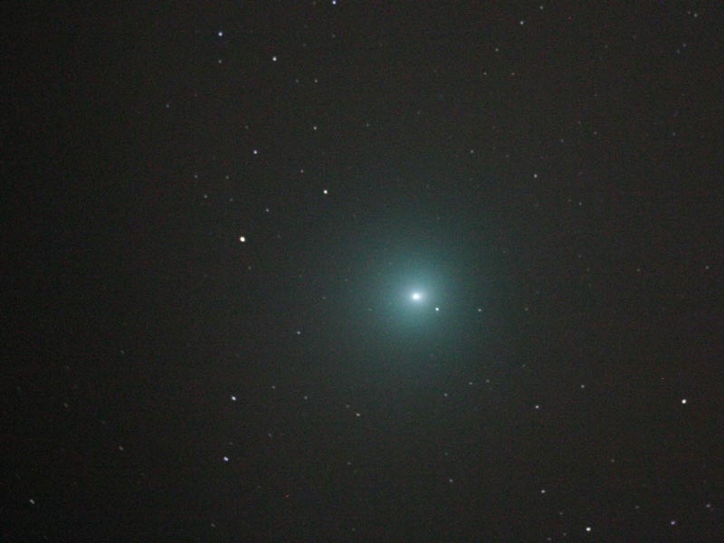 | Bericht: | Die besten Tage von Komet Machholz scheinen zu Ende zu gehen, zumindest für uns in Stadtnähe. Selbst mit Kontrastverstärkung der Fotos ist vom Kometenschweif kaum etwas übrig geblieben. Aber vielleicht hält er in den nächsten Tagen und Wochen doch noch eine Überraschung bereit... Visuell ist es jedenfalls ein Genuss, die Wanderung des Kometen an den Plejaden vorbei Tag für Tag verfolgen zu können. Details zur Aufnahme: Meade Schmidt-Cassegrain 200/2000 mm mit Shapley-Linse auf ca. 1700 mm reduziert. Komposit aus 5 Aufnahmen mit Canon EOS 300D, je 30 Sekunden mit Setting ISO 1600.