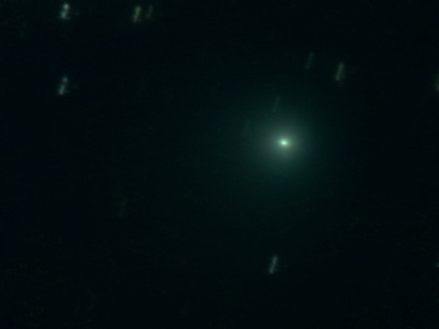 | Bericht: | Nach einem herrlichen Beobachtungsabend mit Herrn Wilhelm Schatz und seinem Ninja 320 bei mir daheim im Garten hat es mich dann doch noch zur Fotografie gezogen. Wie auch bei den vorigen beiden Versuchen kämpfte ich gegen Hotpixels und den Schneckenfehler, habe aber diesmal die Bilder mit dem neuen Registax zentriert und addiert. Auf dem addierten Summenbild sieht man anhand der unterbrochenen Strichspuren deutlich wieviele Einzelbilder nicht verwendbar waren. Hier das Resultat: