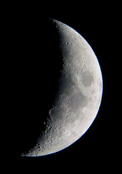 Der Mond zeigt sich heute in einer prächtigen Phase mit dem grossen Krater Theophilus genau am Terminator. Die extreme Libration macht das Mare Crisium wieder einmal randfern und zeigt seltene Formationen wie das Mare Marginis oder das Mare Smythii.