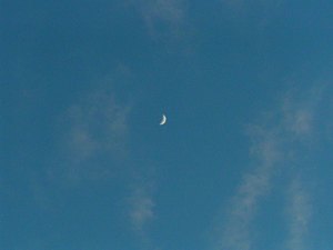 Von Norden her drängen im Lauf des Abends noch wiederholt dichtere Wolken nach, doch von Osten her klart es auf. Eine Zeit lang verläuft die Grenze zwischen klarem und bedecktem Himmel genau über unseren Köpfen. Das macht die Beobachtung des Mondes spannend, vor allem Kinder haben ihren Spass daran.