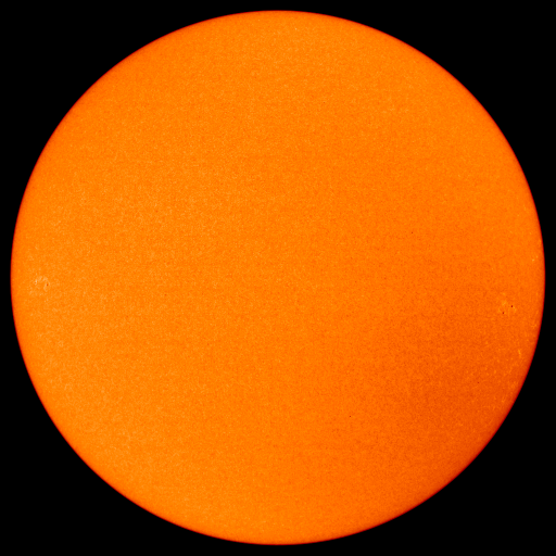 Am Samstag und Sonntag war es zumindest einigermassen klar und ich konnte die Sonne beobachten. Derzeit ist "nichts los" auf der Sonne -- kein Wunder, das Sonnenfleckenminimum dürfte nächstes Jahr eintreten. | Am Samstag den 26.Feb.2005 beobachtete ich um 11h00 bei 53x: das Bild war ruhig und scharf. Am Westrand (rechts im Bild) war recht deutlich ein helles Fackelfeld zu erkennen. Darin konnte ich blickweise einen winzigen Sonnenfleck ausfindig machen: 1 g(ruppe) + 1 f(leck) ergibt R(elativzahl) = 11. | | | Am Sonntag den 27.Feb.2005 beobachtete ich um 12h15: 53x ergab kein scharfes Bild, es war sehr flau durch hochliegende dünne Bewölkung. Bei 30x ging es so und es war kein Fleck sichtbar: die Sonne ist fleckenfrei! Das Vergleichsbild des Satelliten SOHO zeigt ebenfalls keinen Fleck: | |